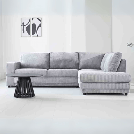 6.611,00 kr8.263,00 krEnhed /Ikke tilgængeligL-formet hjørnesofa i lysegråt ribstof med chaiselong Gabi - højre