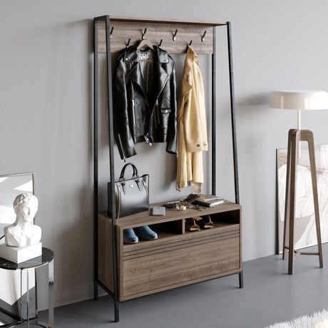 1.433,00 krEnhed /Ikke tilgængeligGarderobemøbel Knagerække Valnød Melamin Devon - Med Rum og Skuffe