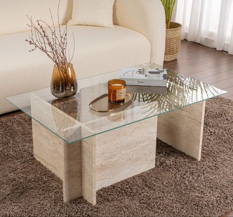 937,00 krEnhed /Ikke tilgængeligRektangulær Moderne Sofabord Vetroni Travertin Look - Glas - 105x65 cm