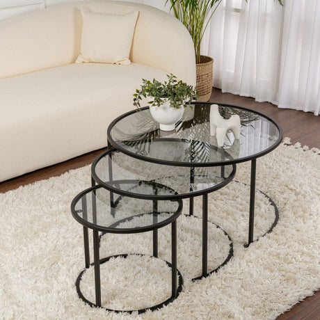 717,00 krEnhed /Ikke tilgængeligModerne Rundt Sofabord Sæt af 2 Uru Sort - Transparent Glas - 80/60 cm