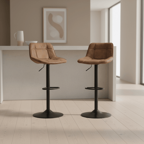 Sæt af 2 industrielle drejelige barstole i cognac mikrofiberstof Keston - Justerbar