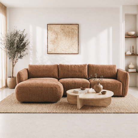 13.308,00 kr16.379,00 krEnhed /Ikke tilgængeligHjørnesofa med lounge i kobberfarvet bouclé-stof Nova – venstre