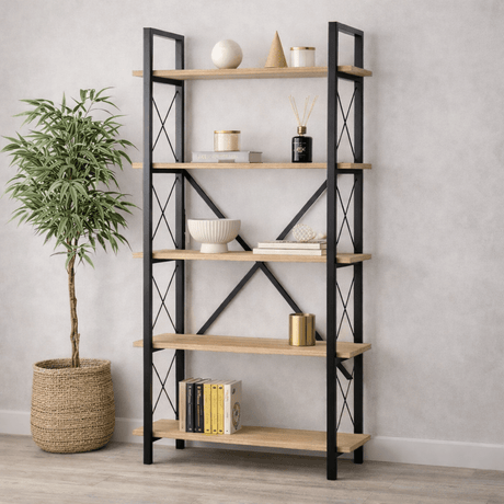 1.535,00 krEnhed /Ikke tilgængeligIndustriel Bogreol Ely Eg Melamin - Sort Ramme - 180x90 cm