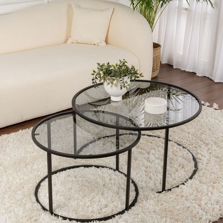 - Sofabordssæt af 2 Runde Glas - Sort Ramme - 60, 42 cm - Leveringstid 3 til 4 uger 771,00 krEnhed /Ikke tilgængelig