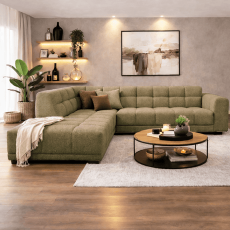 13.306,00 kr16.377,00 krEnhed /Ikke tilgængeligHoekbank met lounge olijf groen bouclé stof Nova - links