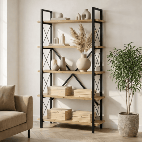 1.536,00 krEnhed /Ikke tilgængeligIndustriel Bogreol Ely Eg Melamin - Sort Ramme - 180x90 cm