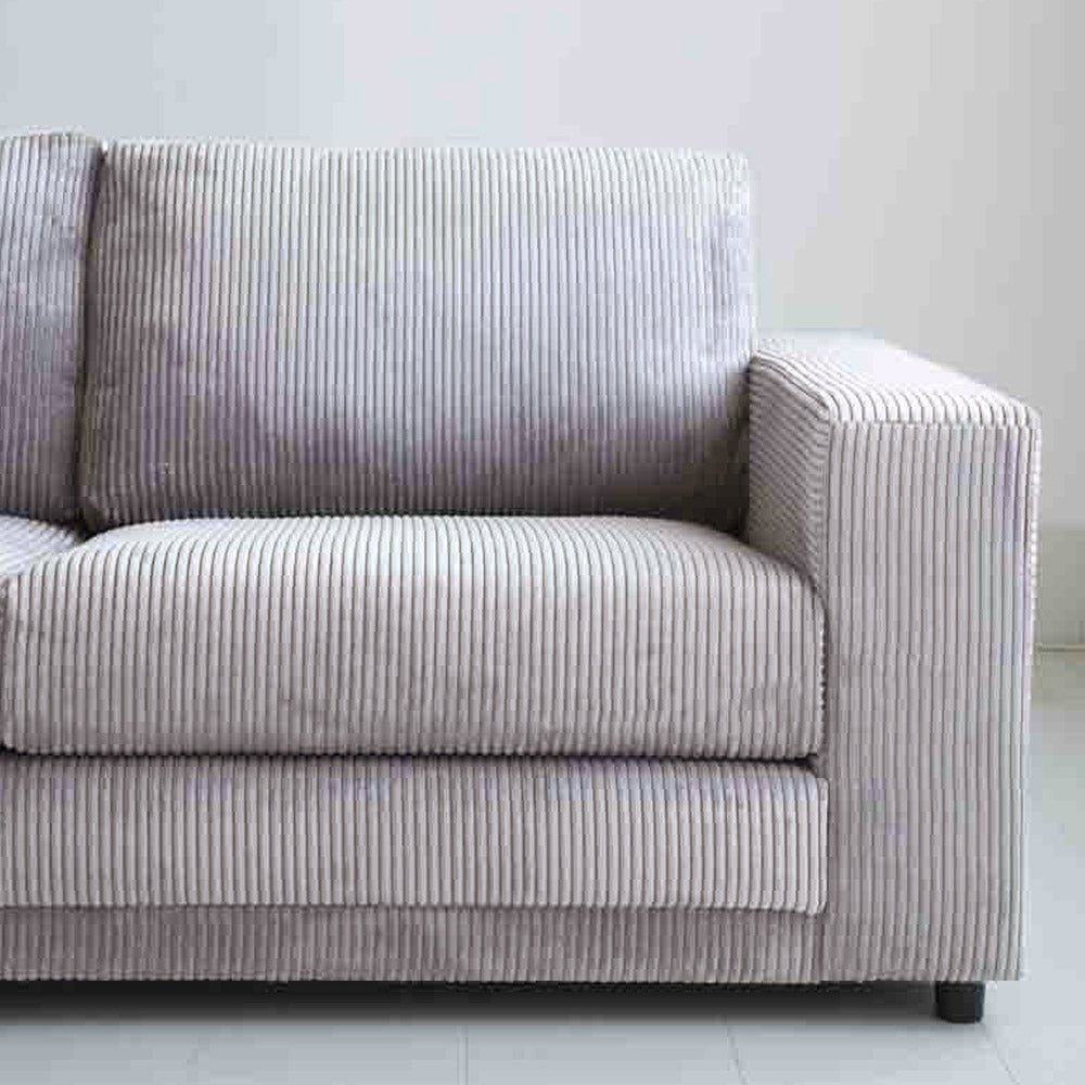 Hjørnesofa lysegrå ribstof puffebord Gabi - venstre
