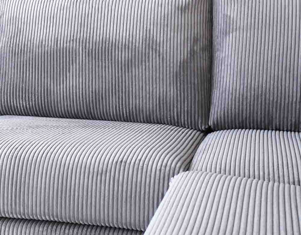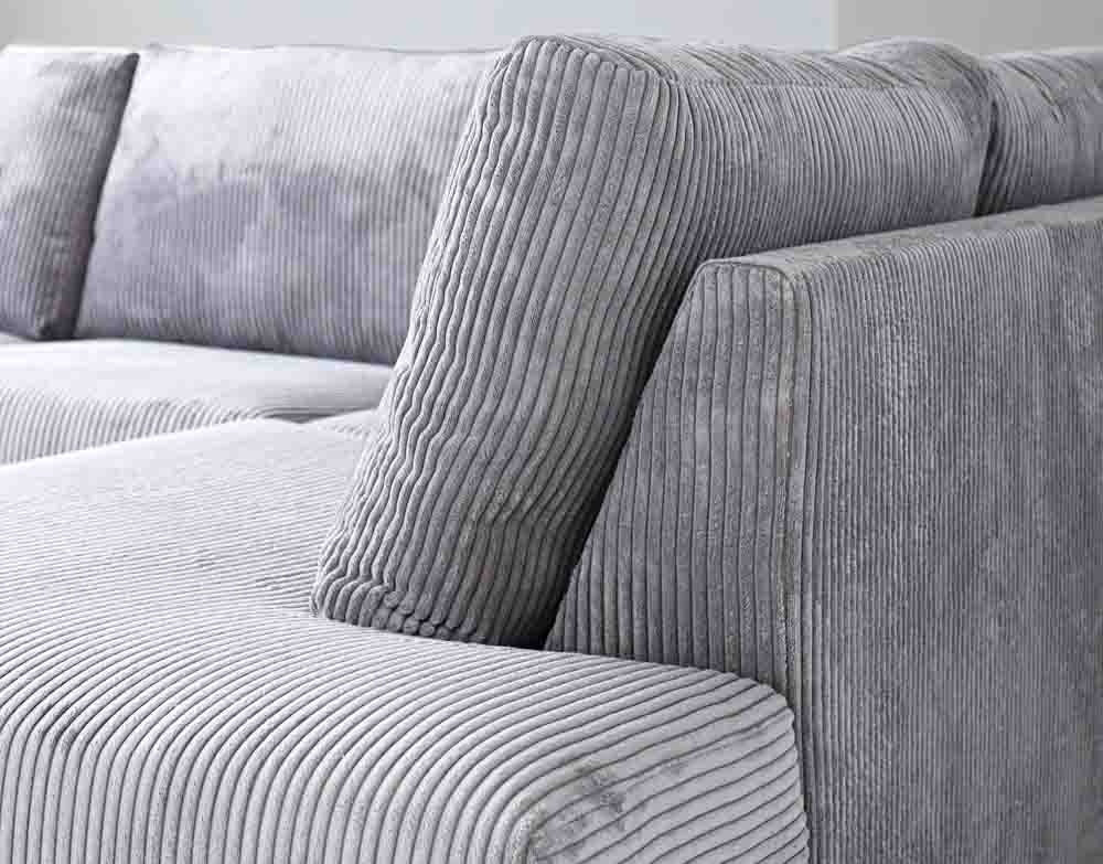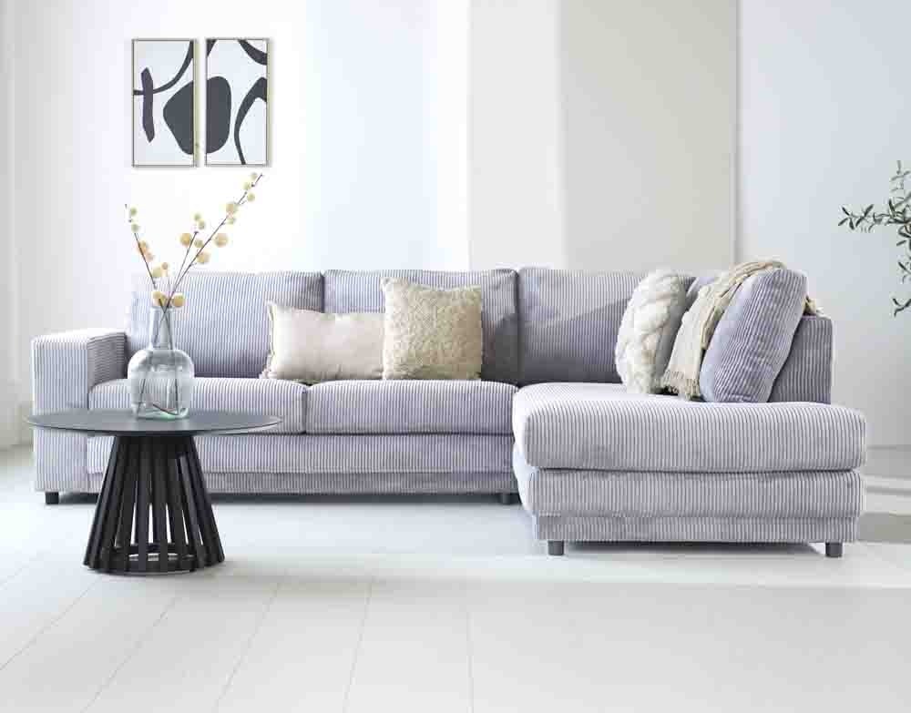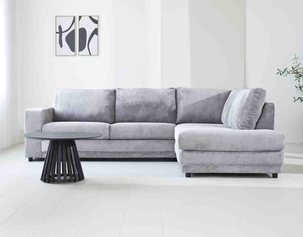 L-formet hjørnesofa i lysegråt ribstof med chaiselong Gabi - højre
