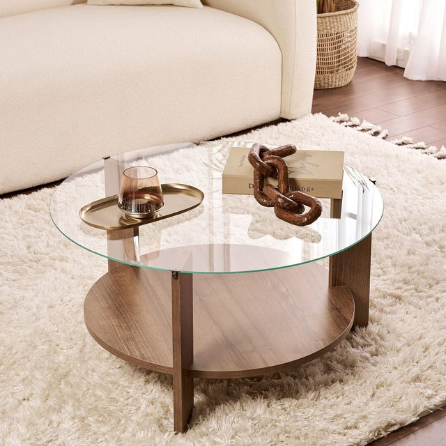 Cairo Salontafel Rond Ø75 cm Walnoot - Glas 75x75x40 cm