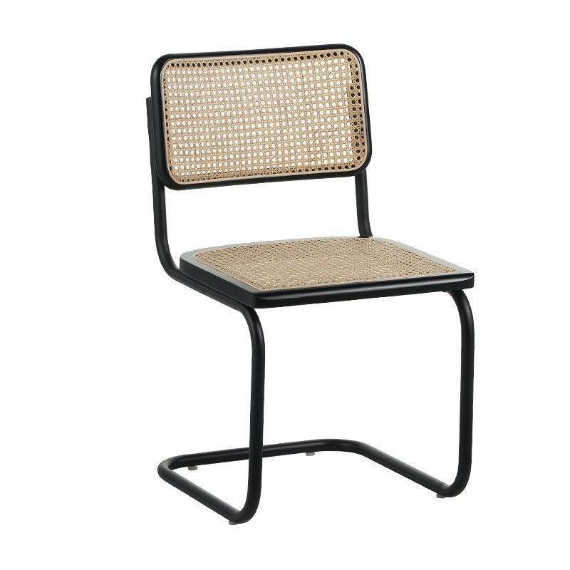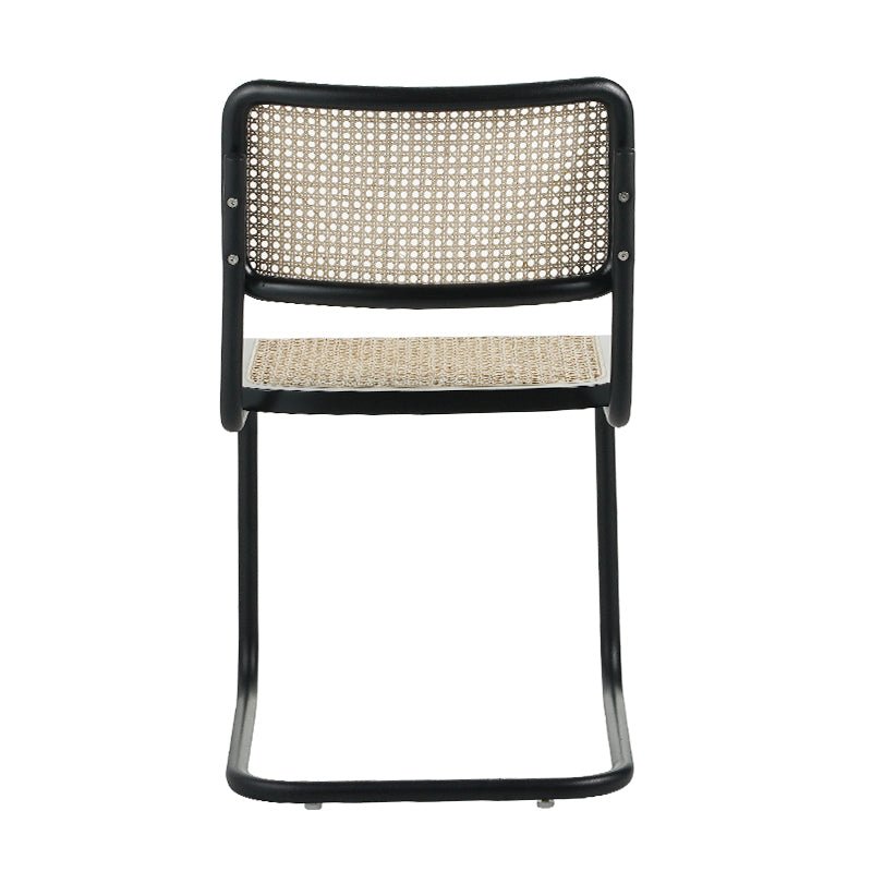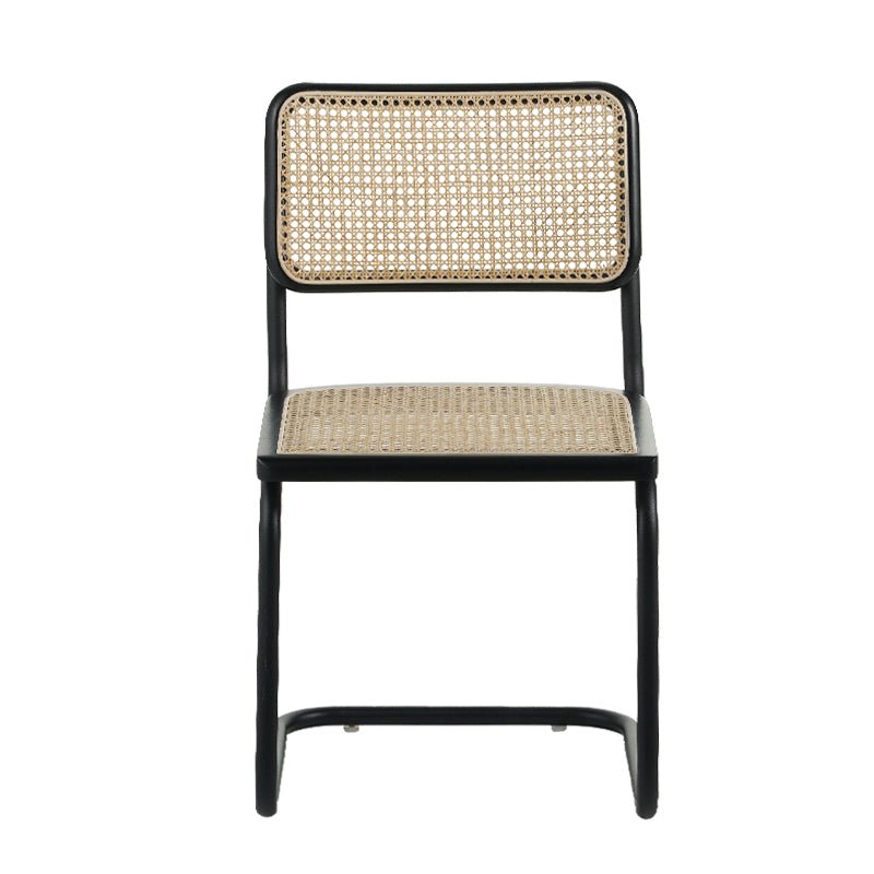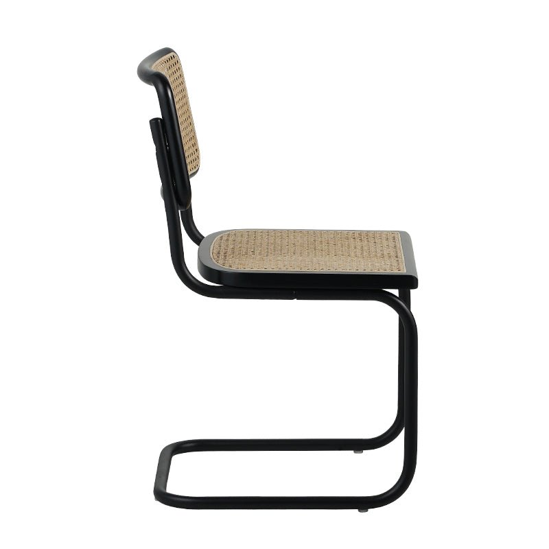 Buisframe eetkamerstoel Vester zwart metaal met bamboe webbing - Zonder Armleuningen