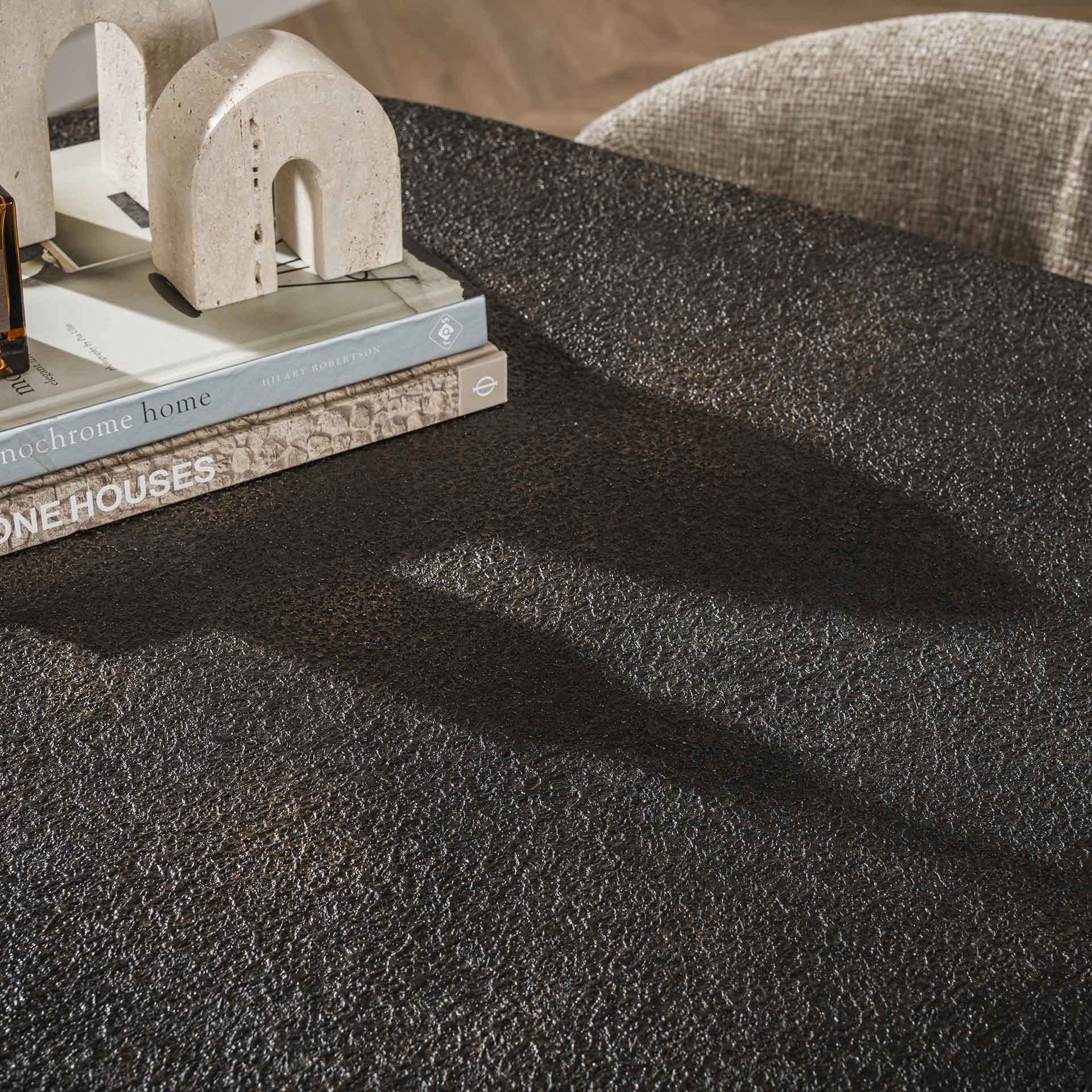 Spisebordet Jax kombinerer stil og funktionalitet i dit spisestuehjørne. Det danske ovale bordplade på 180 x 90 cm i elegant grå giver et blødt, organisk udseende, der passer perfekt til moderne og skandinaviske interiører. Takket være de afrundede konturer virker bordet let og luftigt, mens den subtile metallic-effekt tilføjer dybde og luksus. Med plads til op til 6 personer er dette det ideelle bord til hverdagsmåltider og hyggelige middage. Den vedligeholdelsesvenlige bordplade gør rengøring nem, så du kan nyde lange aftener ved bordet uden bekymringer.