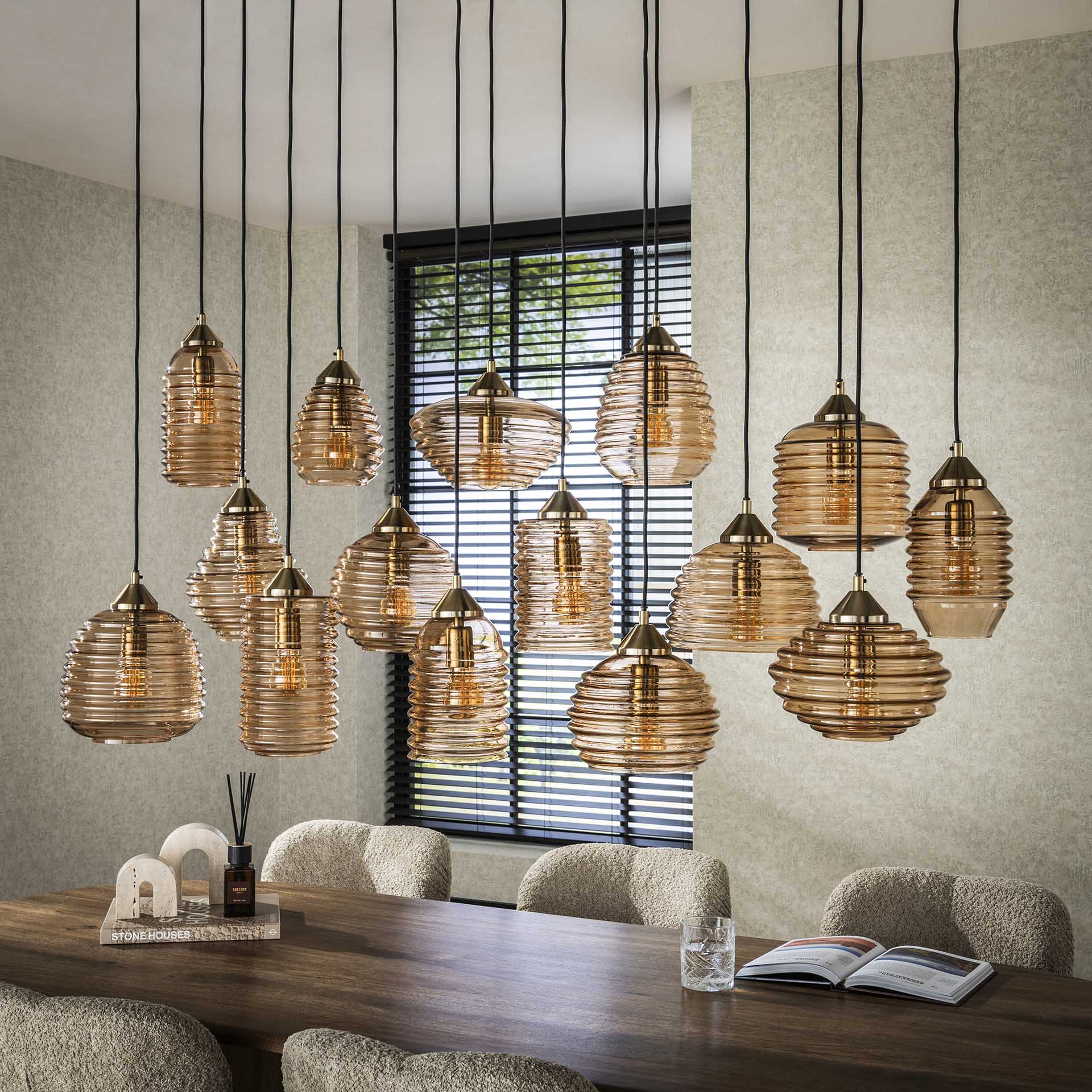Loftlampe Mali 15-lys rillet glas ravfarvet