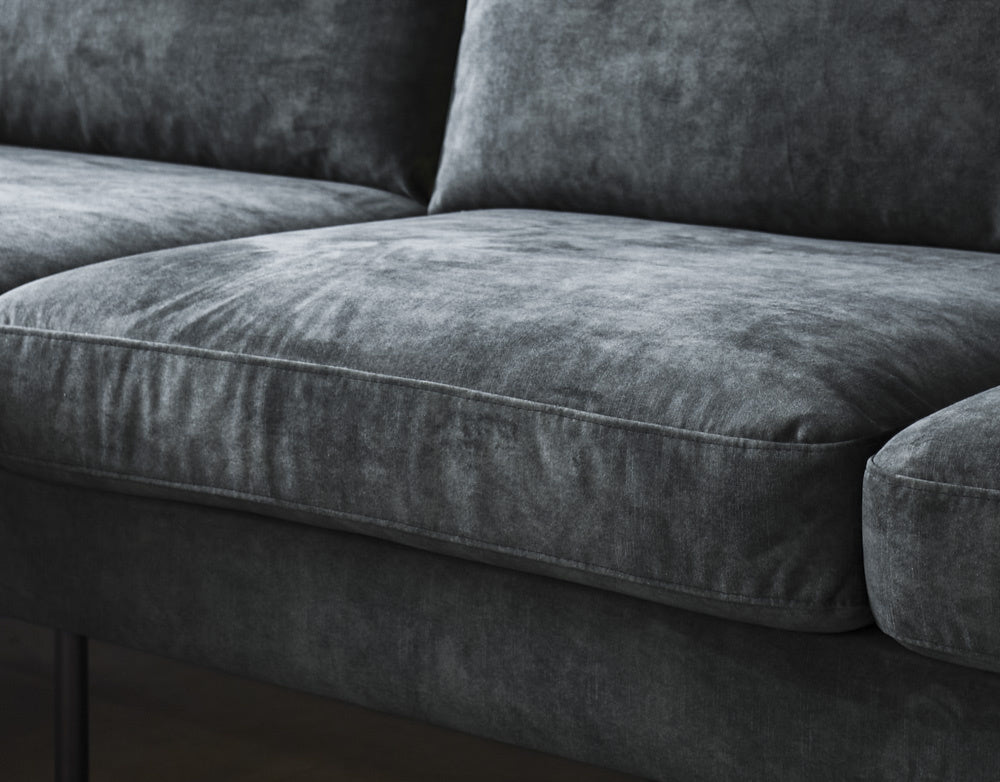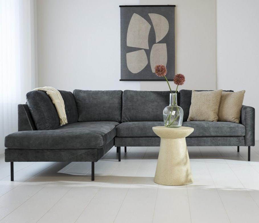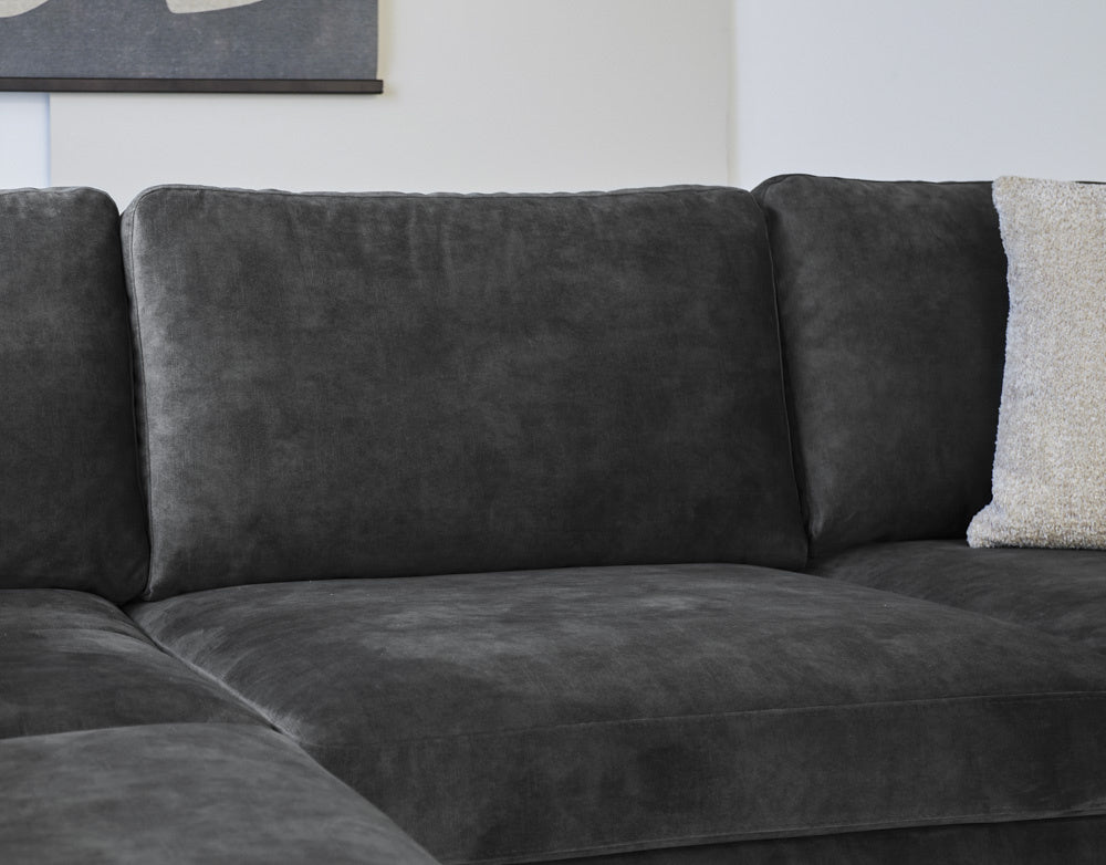 Hjørnesofa antracit fløjl høje ben Gaya - venstre