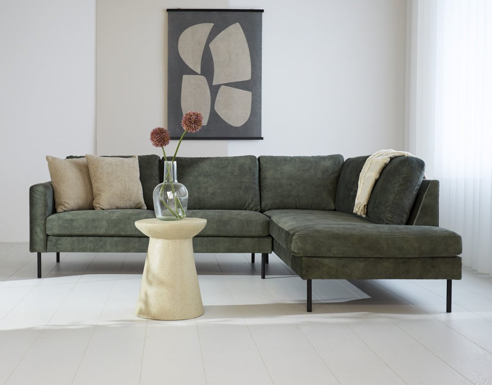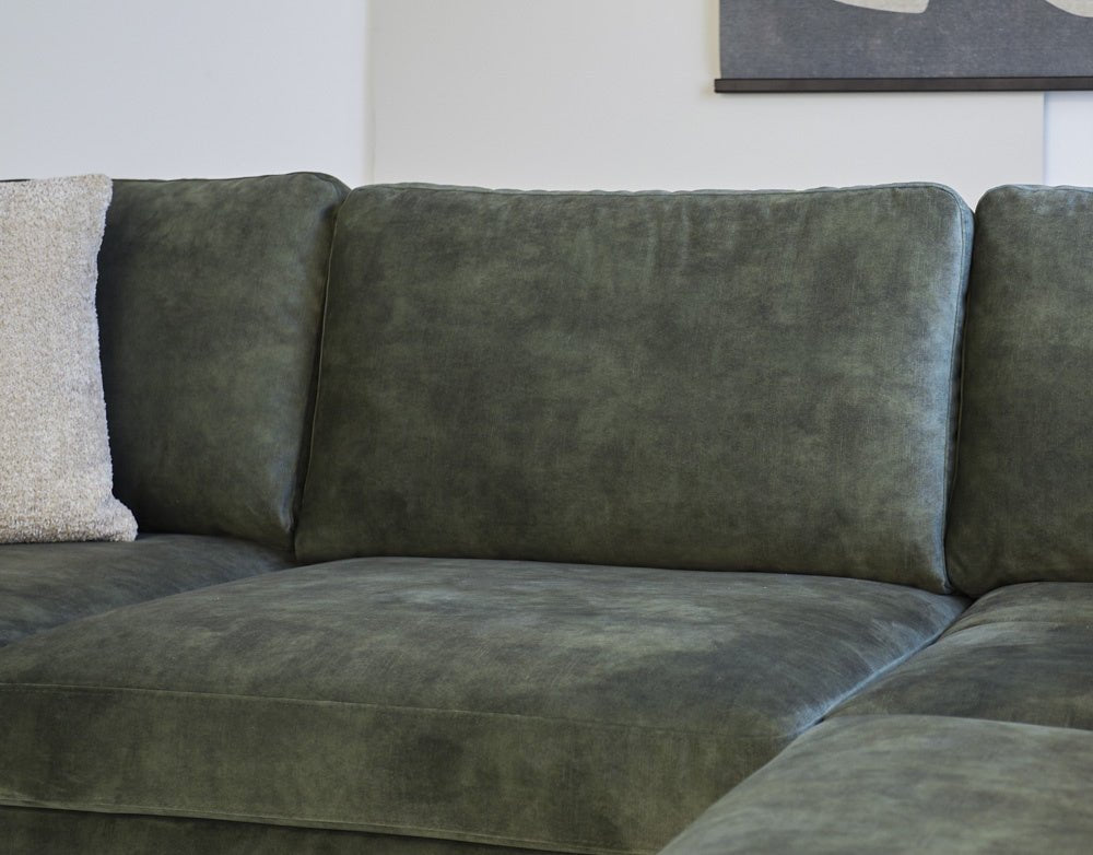 Beskrivelse og specifikationer for Hjørnesofa grøn velour Gaya - højre