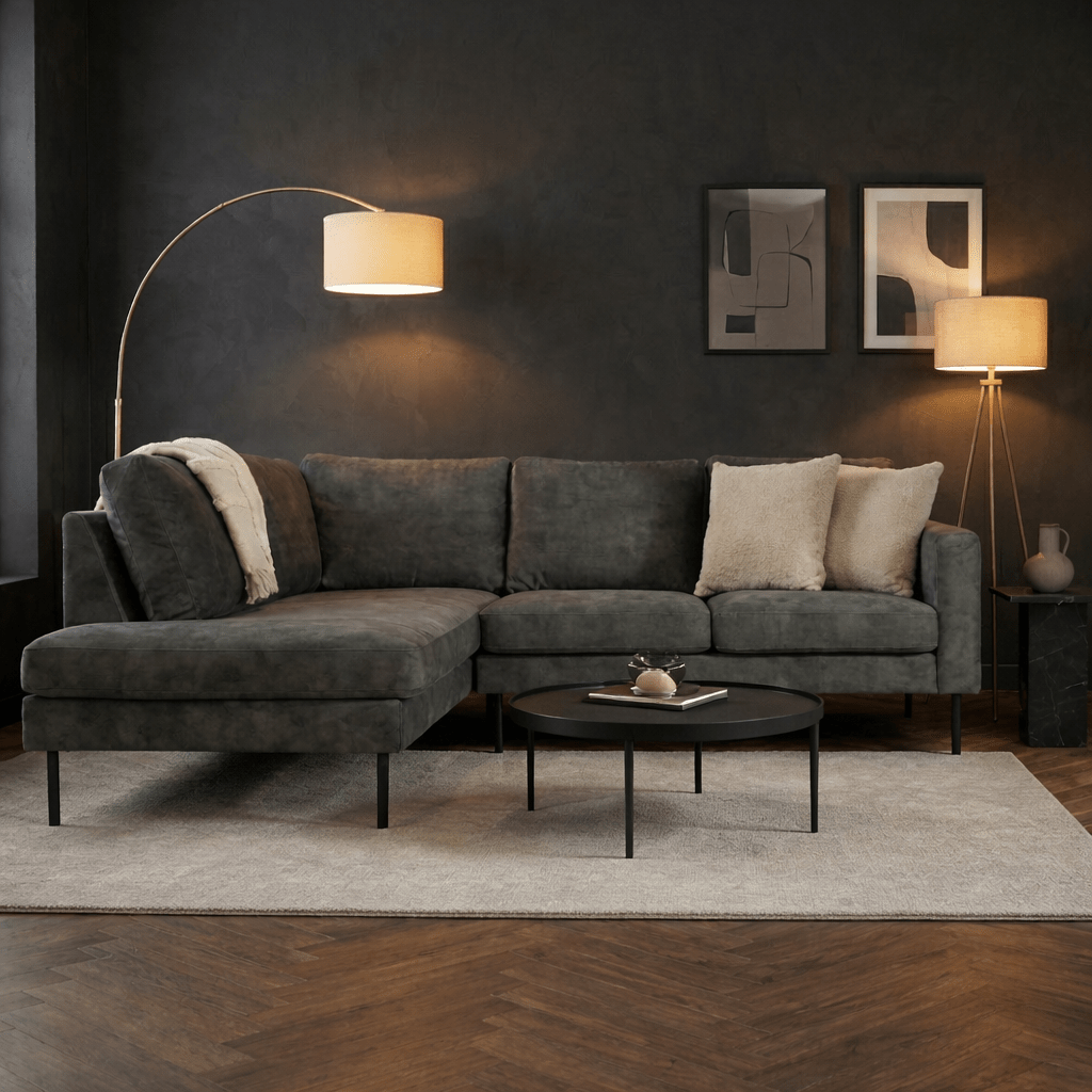 Hjørnesofaen Gaya Antracit er den perfekte tilføjelse til et industrielt og landligt interiør. Dette strømlinede design er ikke kun smukt for øjet, men også ekstremt komfortabelt at sidde i. Hjørnesofaen har brede sæder, hvor du nemt kan sidde med flere personer. Vil du gerne slappe af efter en hård arbejdsdag? Så er denne hjørnesofa Gaya virkelig noget for dig! Se alle Gaya sofaer her.