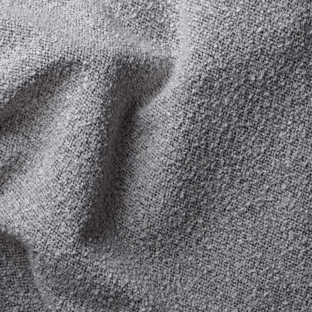 Den anvendte bouclé stof har hele 100.000 Martindale; altså 100.000 sidetimer (holdbar). Stoffet føles robust med sin grove men legende struktur, men samtidig også blødt.