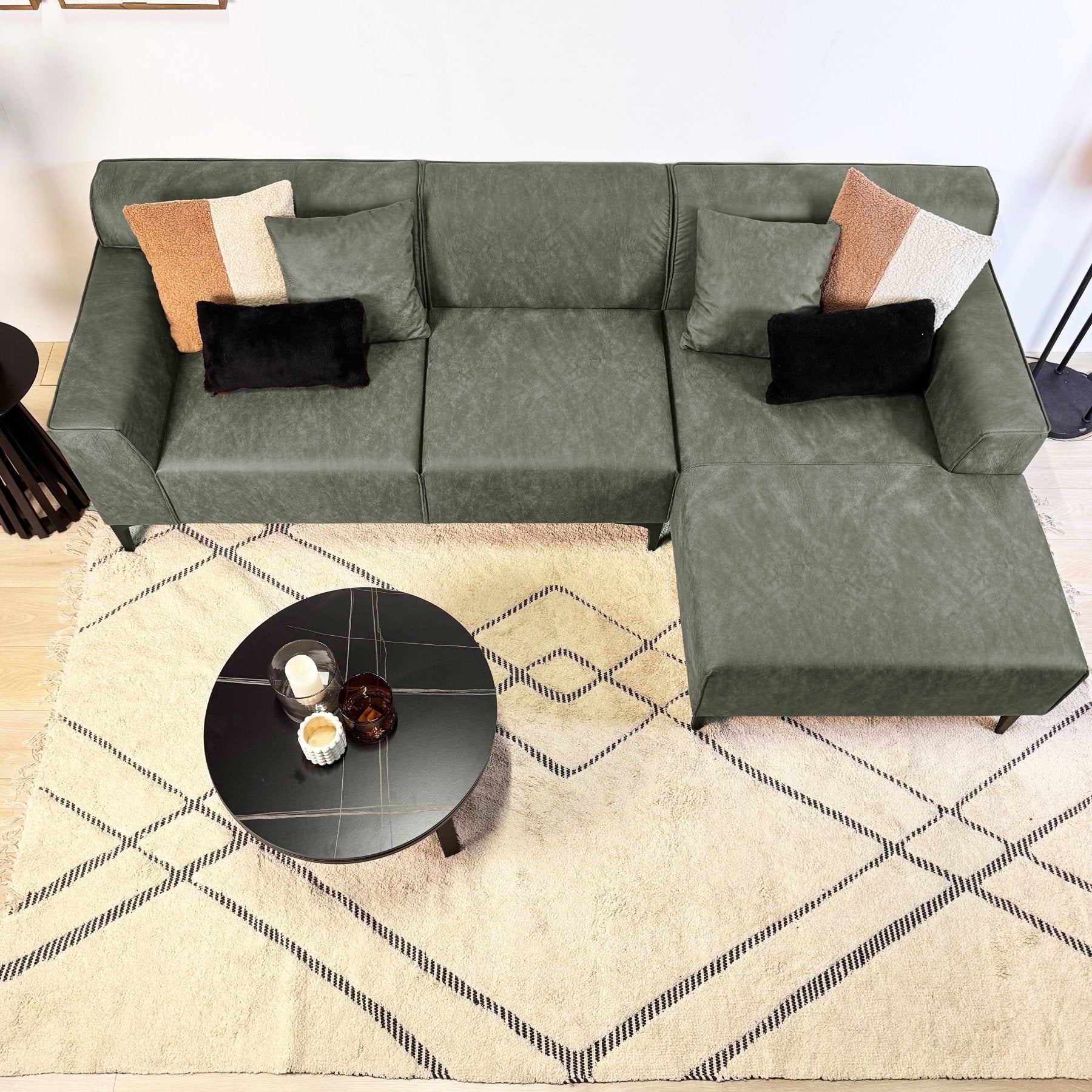 Hjørnesofa med kompakt lounge grøn microfibre Davidson - højre