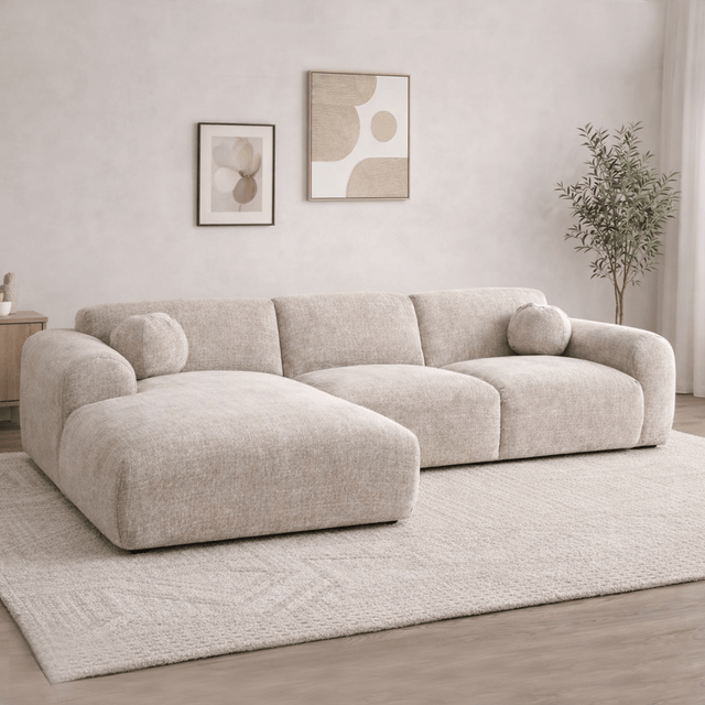 Hoekbank met lounge beige chenille stof Shane - links