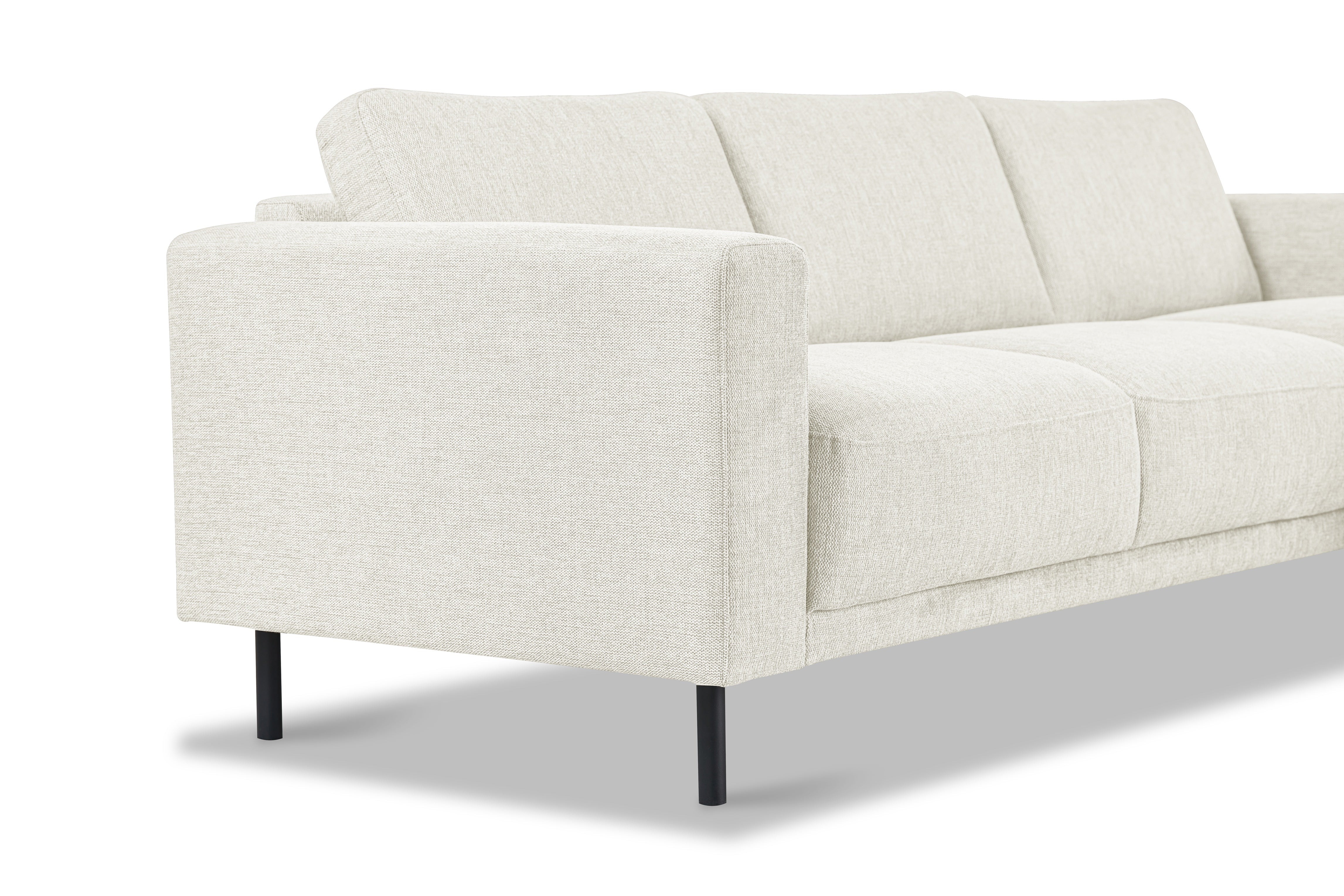 - Moderne afwerking: Slanke zwarte metalen poten (150 mm hoog) geven de bank een luchtige uitstraling en maken schoonmaken eenvoudig.