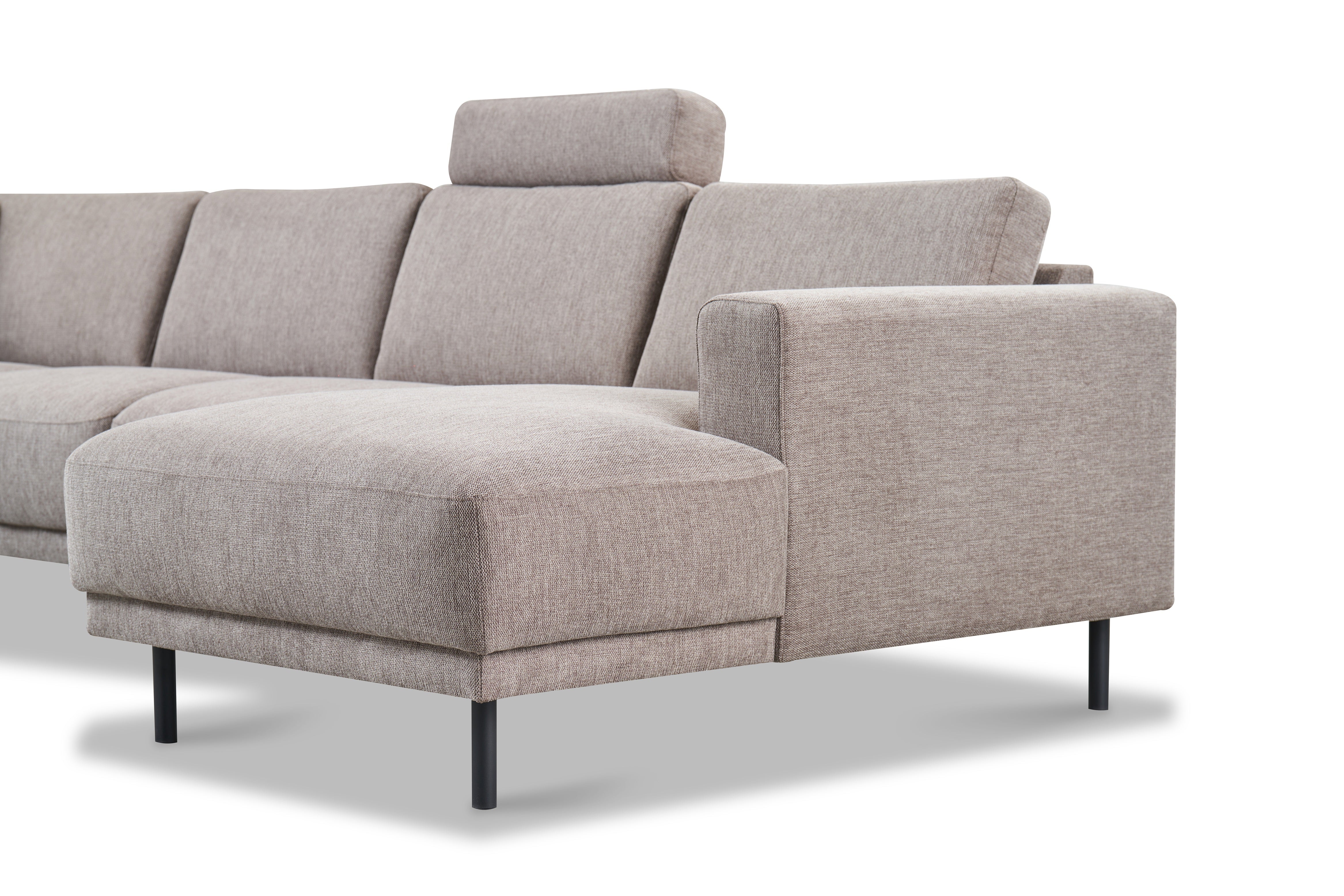 Beskrivelse og specifikationer for Moderne U-Bank Hoekbank Links Taupe Stof Aniko 310x197x78 cm