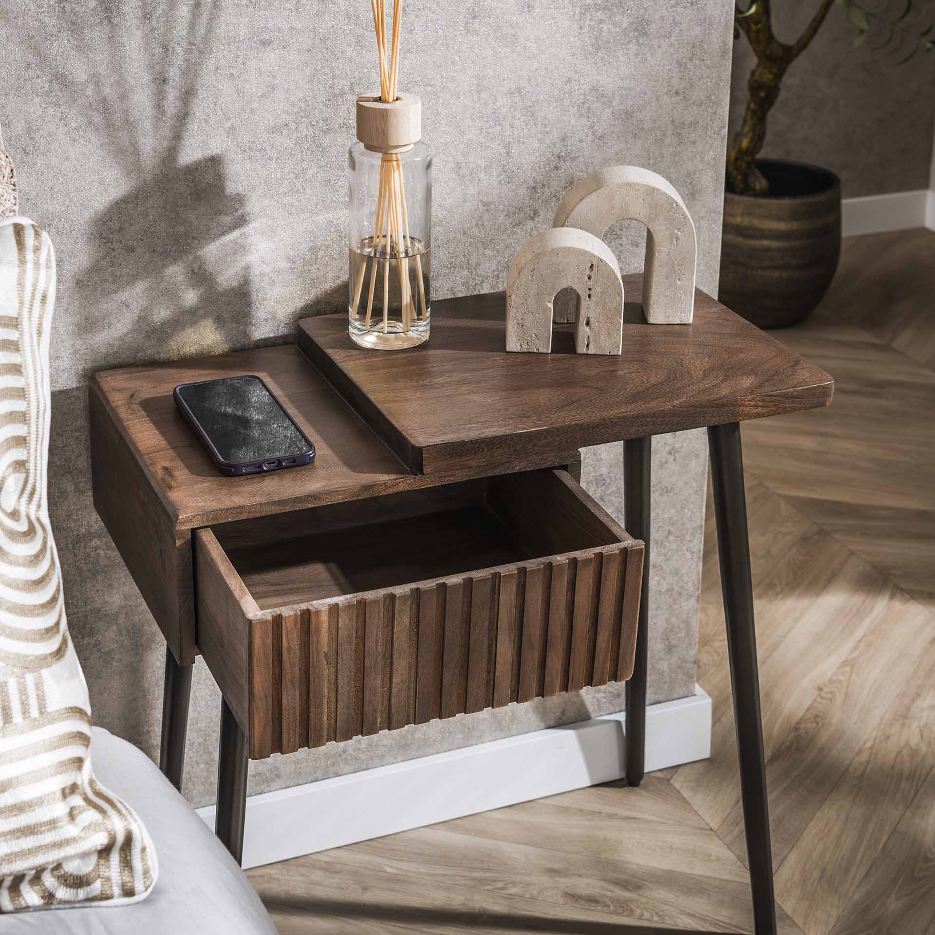 Nattbord Oslo Rechts - Massiv Akacie Drift Brown (1 skuffe)