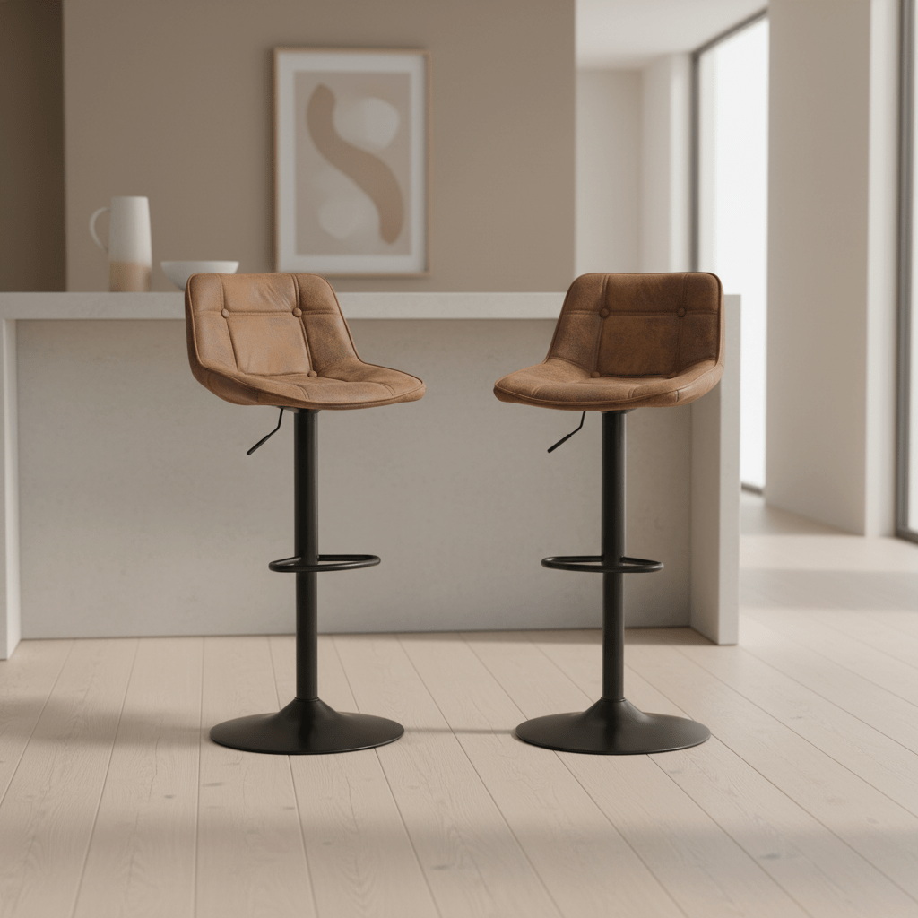 Kontroller altid, om sædehøjden på barstolen passer til dit bord eller bardisk. Hold en afstand på 25 til 30 cm mellem toppen af bordpladen og sædet. Eksempel: med en bardisk på 105 cm passer en sædehøjde på 75–80 cm.