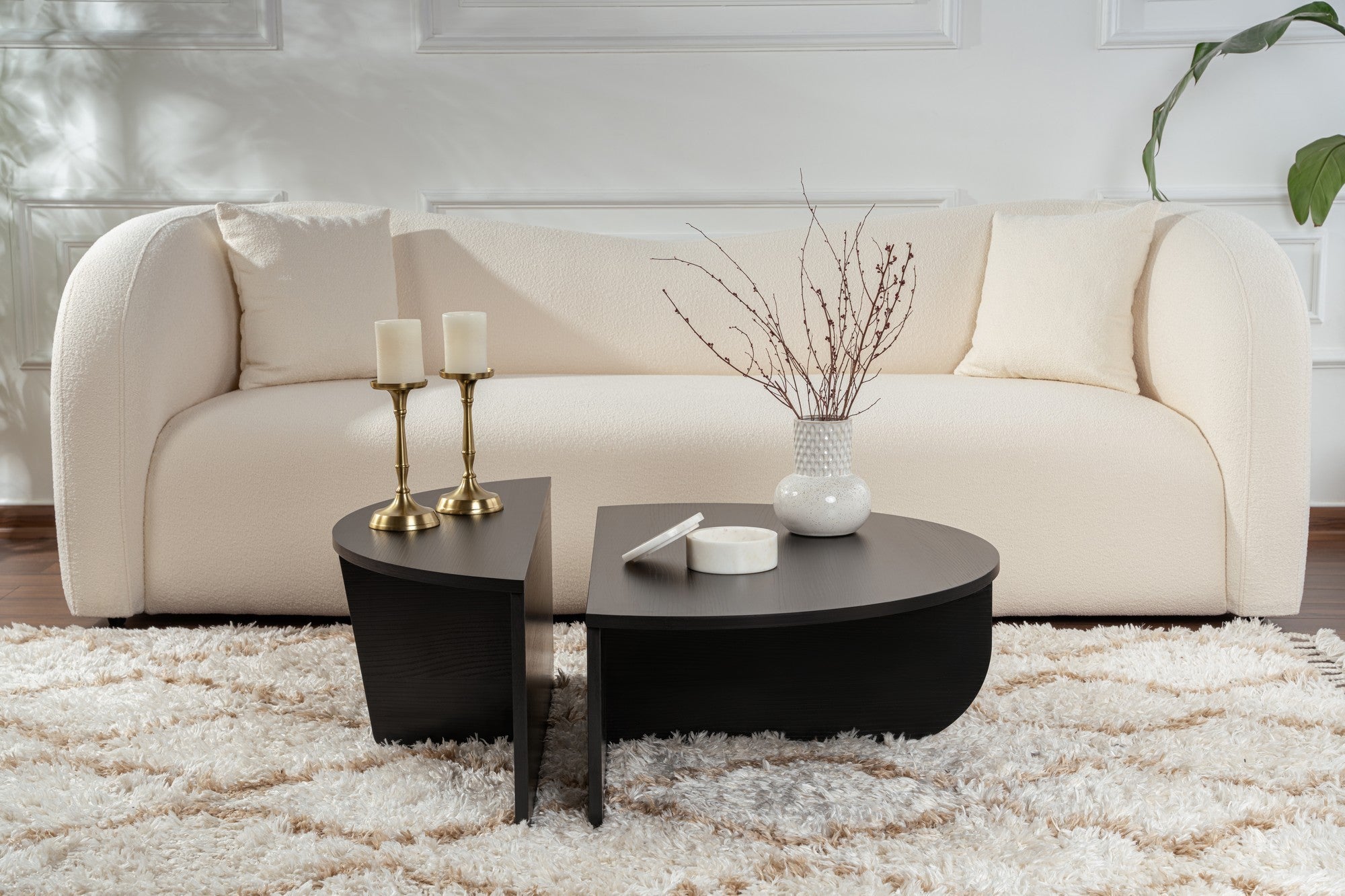 Det strømlinede design af dette sofabord har en perfekt blanding af træ- og sorte farver og tilføjer et moderne præg til ethvert rum. Den rummelige overflade giver tilstrækkelig plads til din morgenkaffe, magasiner eller dekorative genstande, hvilket gør det både praktisk og stilfuldt.