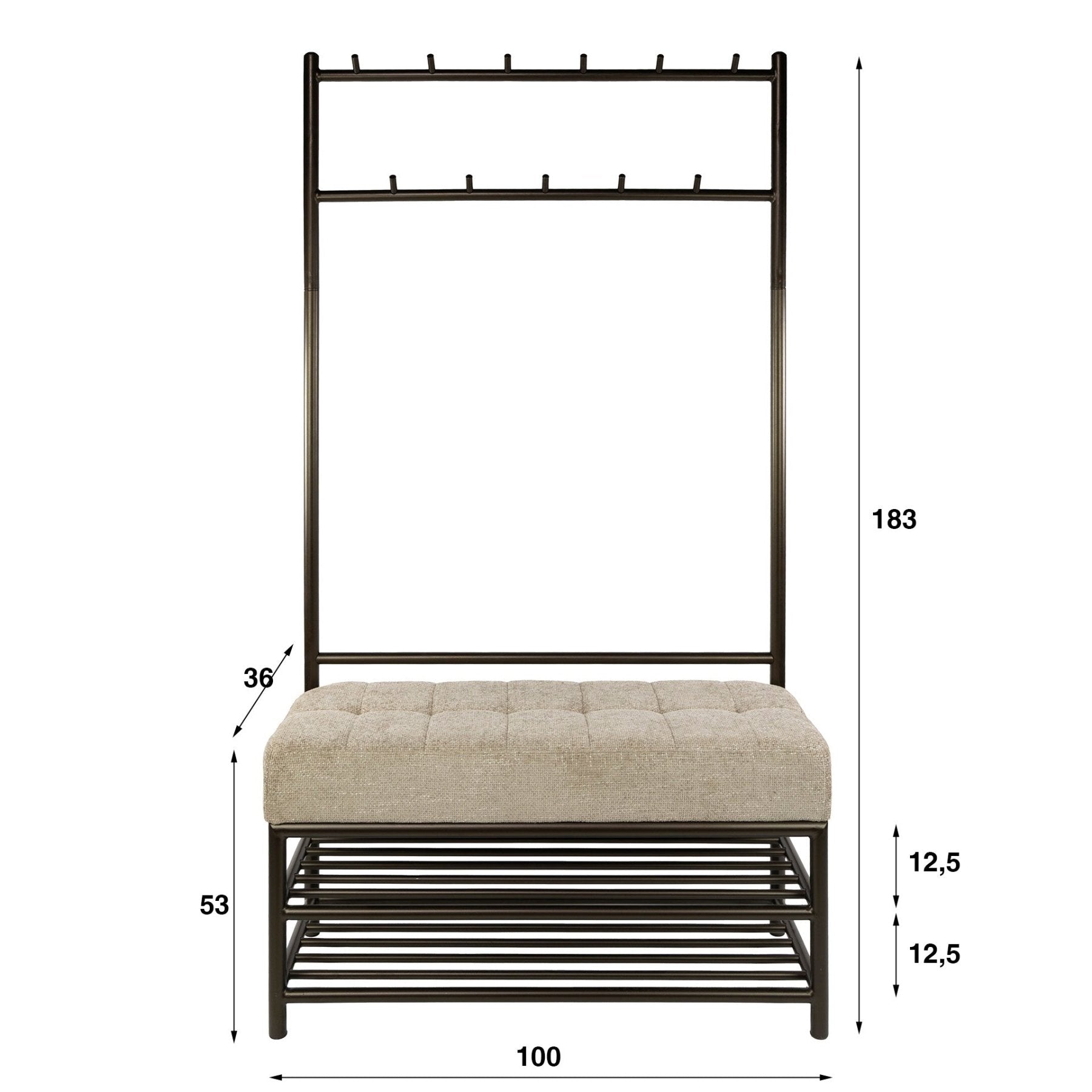 Dette model er designet med fokus på brugervenlighed: en solid siddeplads, tilstrækkelig højde til at hænge jakker overskueligt op, og en robust finish, der kan tåle daglig brug. Bænken er egnet til alle sæsoner og giver et pænt, organiseret udseende uden at optage for meget plads.