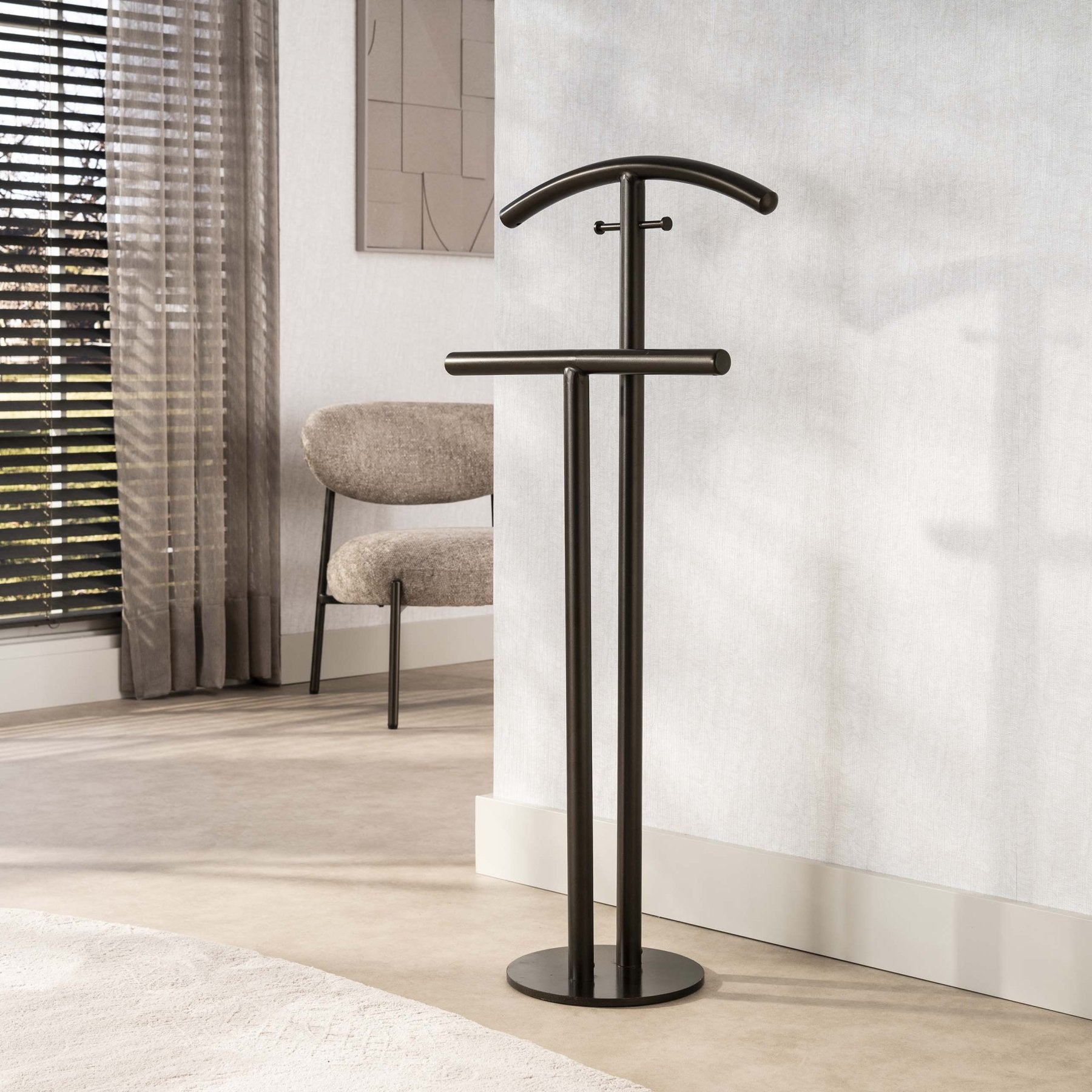 Garderoben er let at placere og kræver ingen fast montering på væggen. Takket være det stabile design giver den plads til jakker, tasker og tilbehør uden at optage meget plads. Det holdbare materiale og den neutrale farve gør vedligeholdelsen nem og sikrer langvarig brug.