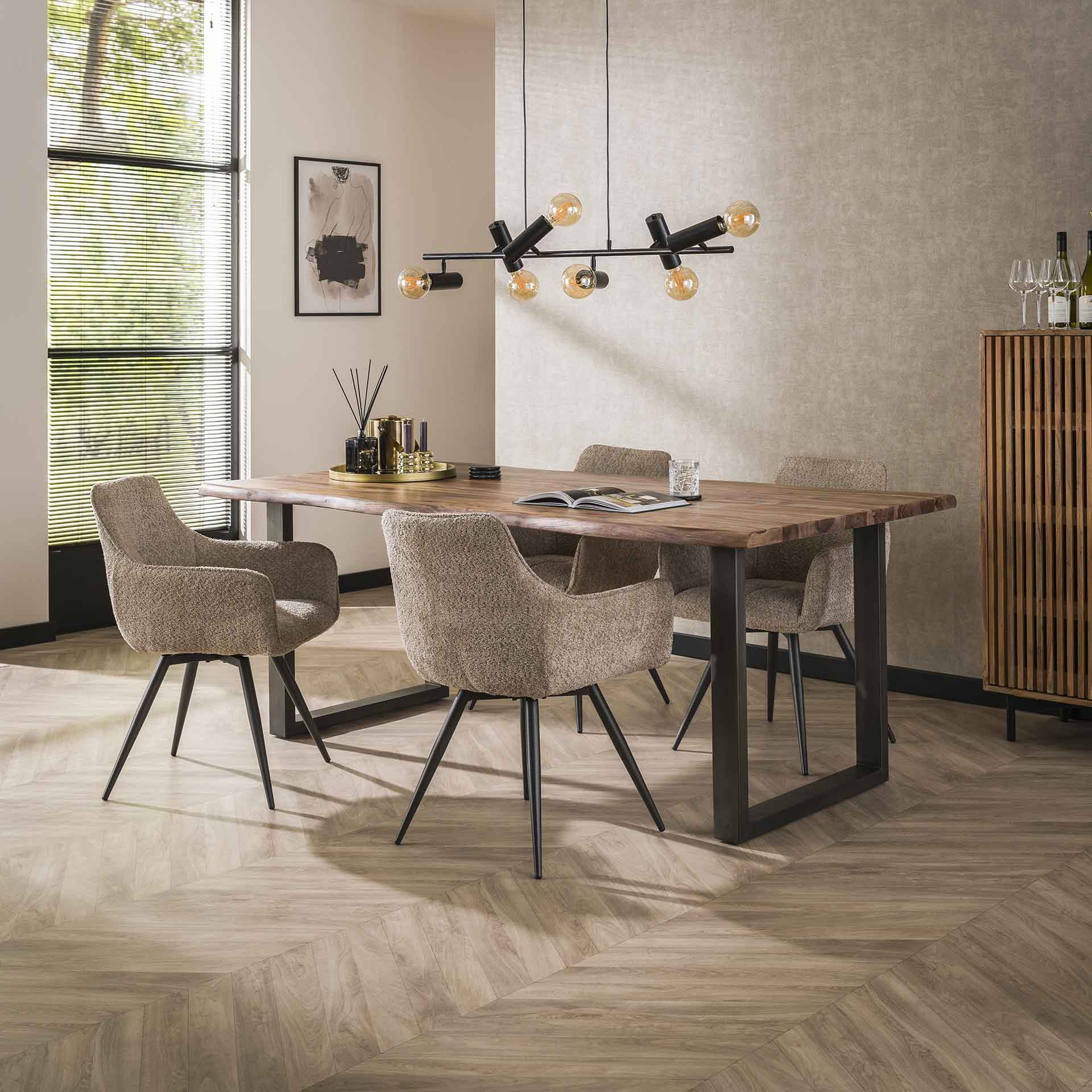 Komfortable bouclé spisestuestole til ethvert interiør