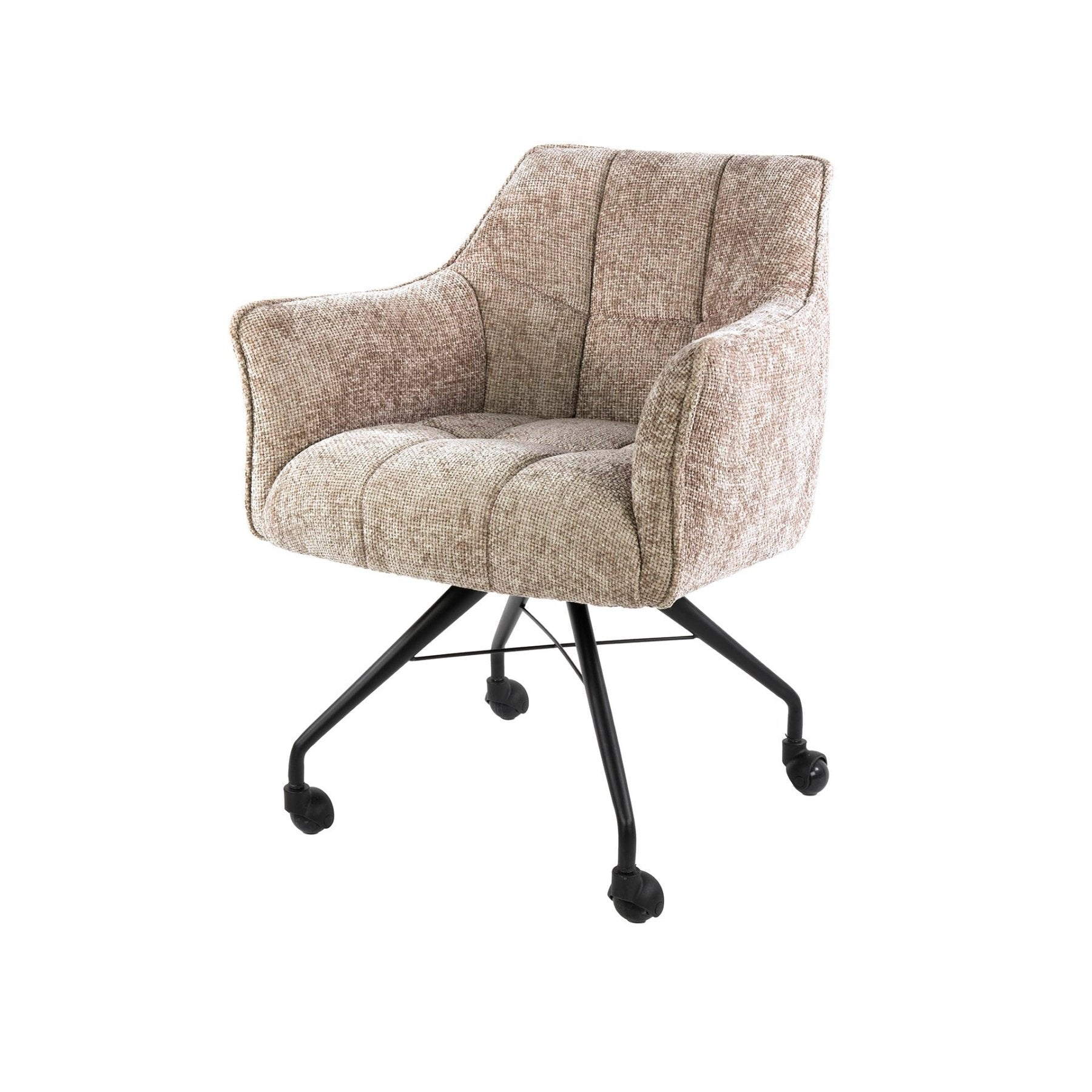Denne sæt med 2 spisestuestole i Hoven rich sand farven kombinerer en subtil udstråling med praktiske hjul for nem flytning. Betrækket er udført i Hoven rich sand, hvilket giver stolene en varm, naturlig nuance, der passer godt til forskellige indretningstyper. Sædet giver solid støtte og har en kompakt størrelse, hvilket gør dem velegnede til både mindre spisestuer og kontorer.