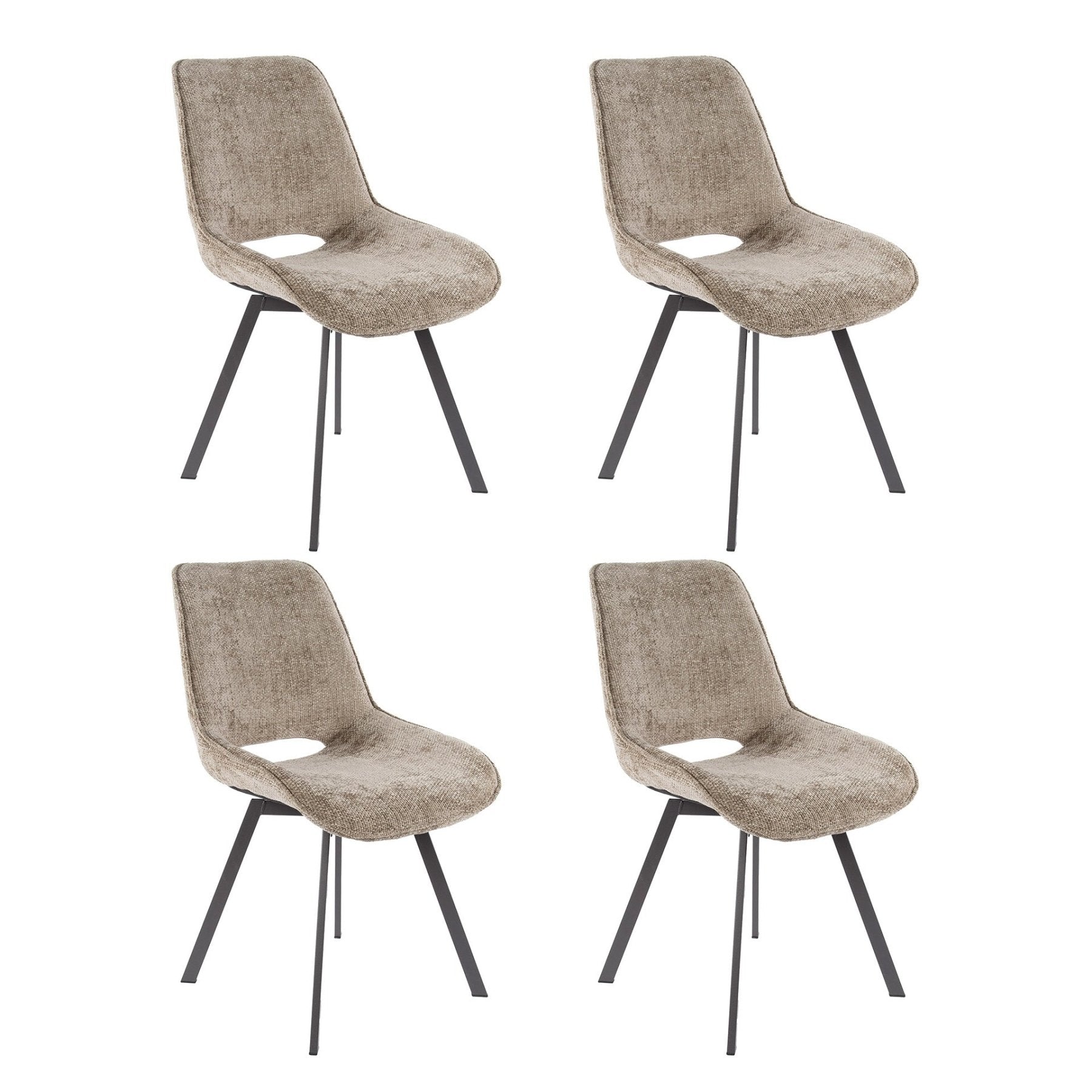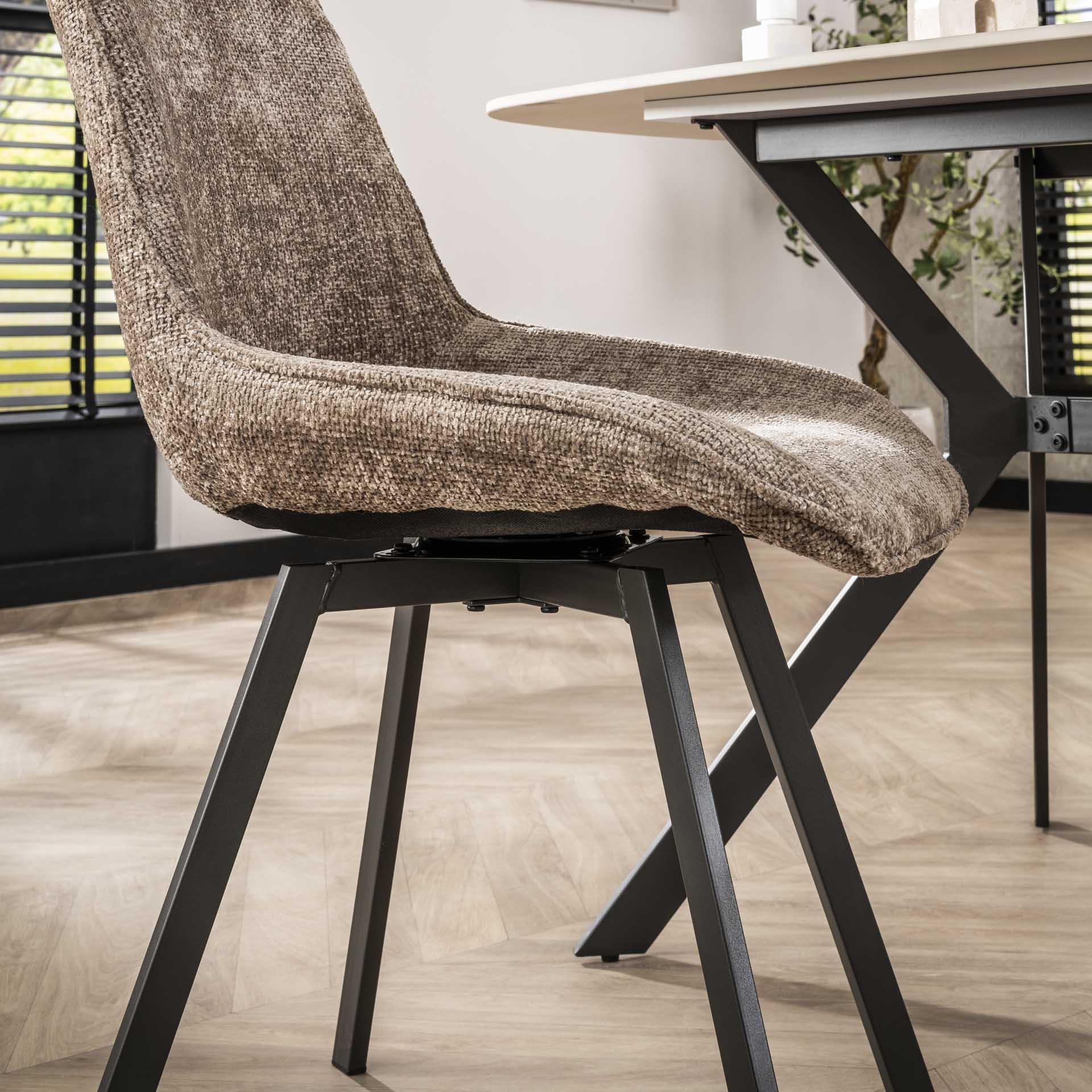 Denne sæt af 4 spisebordsstole kombinerer tidløst design med moderne brugervenlighed. Riviera Rich champagne-udgaven giver en blød udstråling takket være den rige farve og ensartet betræk. Hver stol er drejbar og designet til komfortabel siddeposition under lange middage eller arbejdsøjeblikke ved bordet. De kompakte mål gør stolene velegnede til både mindre spisestuer og større spiserum.