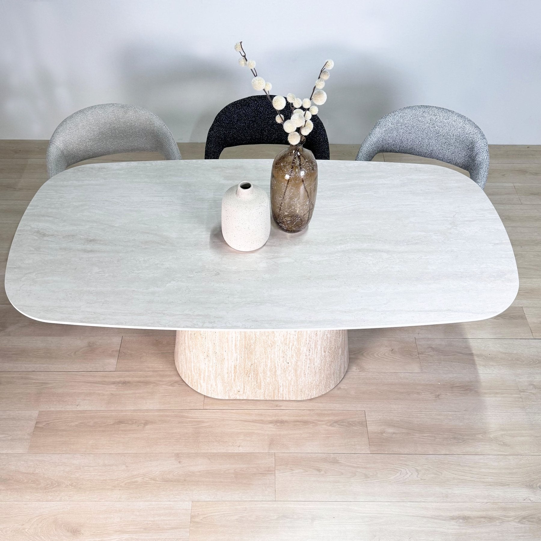 Da bouclé normalt kommer i rolige, neutrale nuancer, passer det perfekt til forskellige indretningsstile og kombinerer problemfrit med stramme eller organiske former. Materialet er holdbart af natur og bevarer sit smukke udseende selv efter langvarig brug, hvilket gør, at lange middage aldrig føles ubehagelige. Ønsker du ro og alligevel karakter i dit interiør? Med bouclé vælger du tidløs elegance og komfort i én.