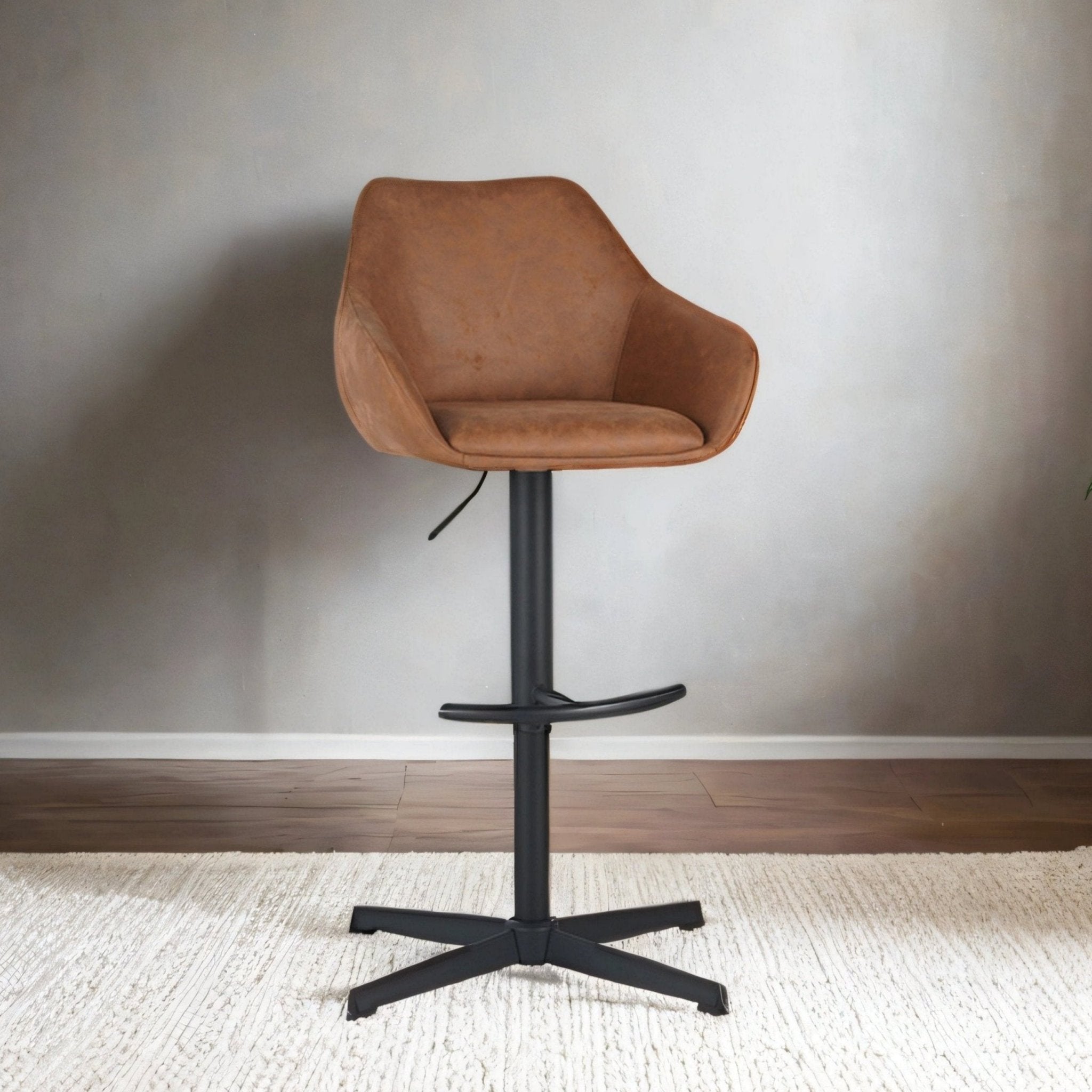 Venom Barkrak Cognac Øko-læder - Justerbar Drejelig Barstol med Armlæn