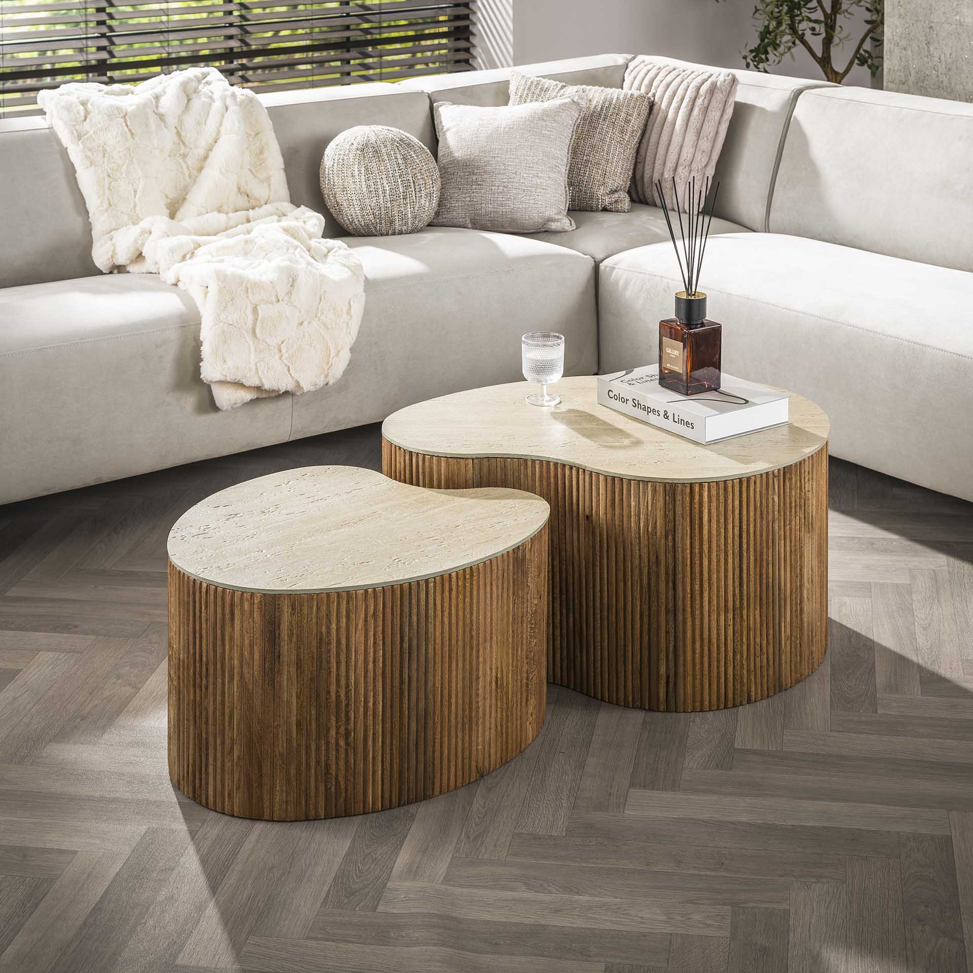 Sæt med 2 Niervormede Sofaborde Mango Sand