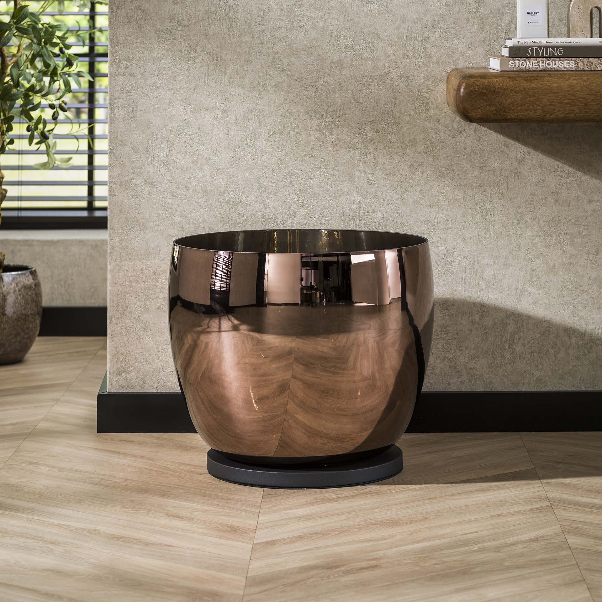 Denne smukke gulvlamp Dain UP er et ægte blikfang! Lampen fås i tre forskellige udgaver, nemlig: amberfarvet, kobber og krom. Lampen findes også i tre forskellige størrelser, og den kommer bedst til sin ret, når den kombineres med 1 eller 2 modeller af de andre størrelsesvarianter.