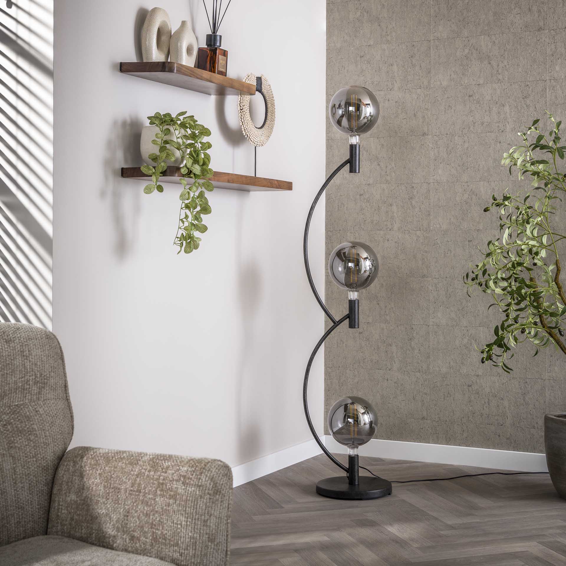 Konstuktionen er lavet af metal for stabilitet og holdbarhed. De tre lyskilder fordeler lyset jævnt og giver mange muligheder for at kombinere atmosfære og funktionalitet. Niro gulvlampen er egnet til forskellige lamper med almindelige fatninger (lamper ikke inkluderet).