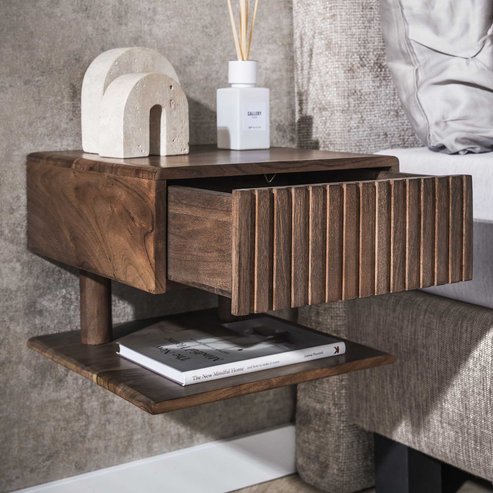 Flydende natbord Akacie Drift Brown – 1 skuffe 35 cm